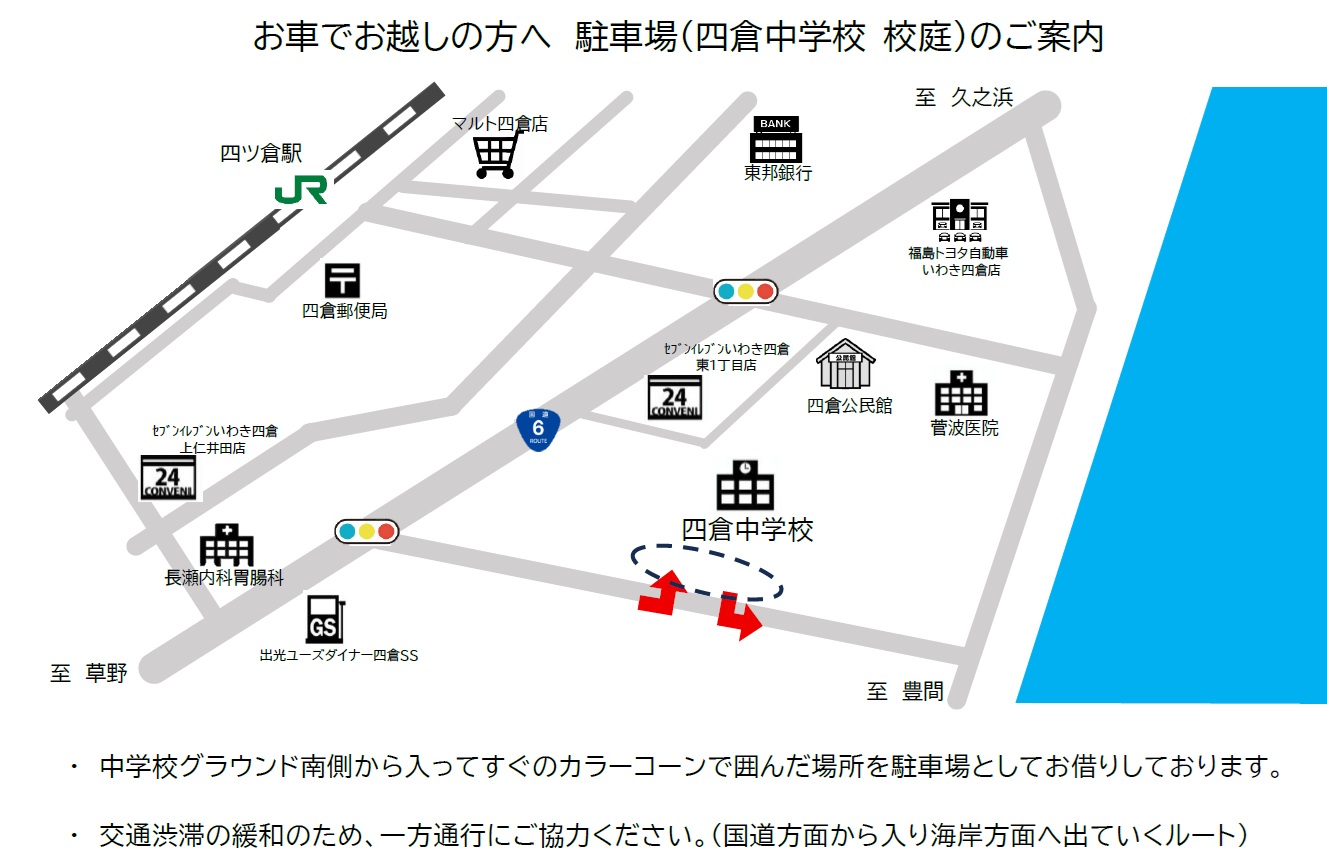駐車場:いわき市立四倉中学校駐車場 (福島県いわき市四倉町字東一丁目65番地) |